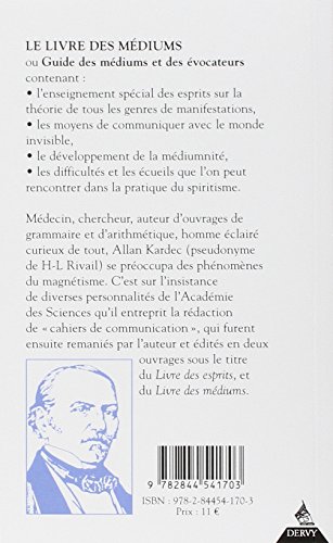 Les moyens de communiquer avec le monde invisible, le développement de la médiumnité, les difficultés dans la pratique du spiritisme... Le livre des Médiums - Allan Kardec - Guide des médiums et des évocateurs contenant : o l'enseignement spécial des esprits sur la théorie de tous les genres de manifestations, o les moyens de communiquer avec le monde invisible, o le développement de la médiumnité, o les difficultés et les écueils que l'on peut rencontrer dans la pratique du spiritisme. Médecin, chercheur, auteur d'ouvrages de grammaire et d'arithmétique, homme éclairé curieux de tout, Allan Kardec (pseudonyme de H-L Rivail) se préoccupa des phénomènes du magnétisme. C'est sur l'insistance de diverses personnalités de l'Académie des Sciences qu'il entreprit la rédaction de " cahiers de communication ", qui furent ensuite remaniés par l'auteur et édités en deux ouvrages sous le titre du Livre des esprits, et du Livre des médiums.